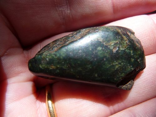 Je fais remonter ce post pour une ID de roche verte ,d'une hache fac-similé que j'ai faite pour un ami,il me demande le nom de cette roche ,mais je dois dire que j'en perd un peu mon latin .Son père avait trouvé ce bloc dans les Alpes ,je ne connais pas la région exacte ,la roche est d'une duteté moyenne ,plus tendre que le silex ...