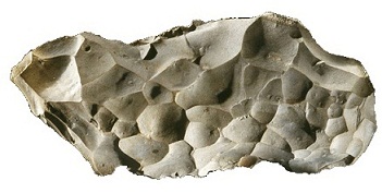On reconnais la taille de la pierre par la main de l'homme en regardant le impacts ou coups donnés de l'extérieur vers l'intérieur de la pierre à partir du bord.
