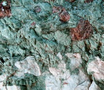 voici la photo d'un échantillon semblable trouvé près des carrières du Monviso (la roche brute, non polie, cette fois).