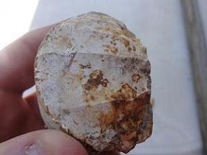 de forme ronde à la base, le silex parait avoir eté fractionné en 4 !