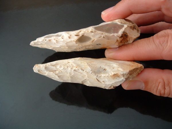 Magnifique biface cordiforme à sa droite.