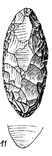 Selon F. BORDES pour qu'un outil puisse être qualifié de 'limace' il faut que la retouche de base converge, détruisant le talon de l'éclat, ou en n'en laissant qu'une faible trace.(voir dessin)