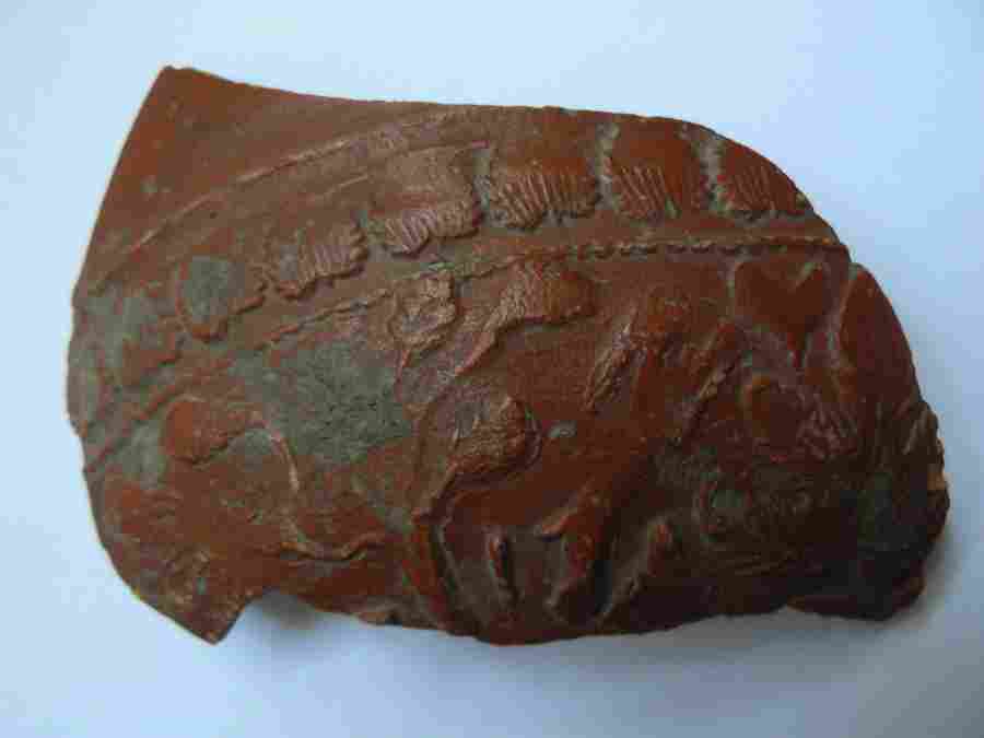 R1 : on trouve ce type de bande supérieure, composée de feuilles, à Montans. C'est en général plus tardif, disons la seconde moitié du 2ème siècle. On remarque d'ailleurs que les reliefs sont empâtés.