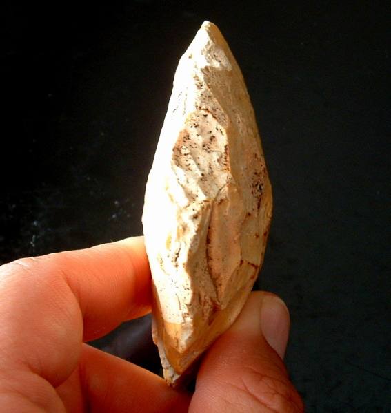 en R2 l'image laisse à penser que l'outil est plat sur cette face, mais il n'en n'est rien, voir en R3, c'est bien une pièce bifaciale .