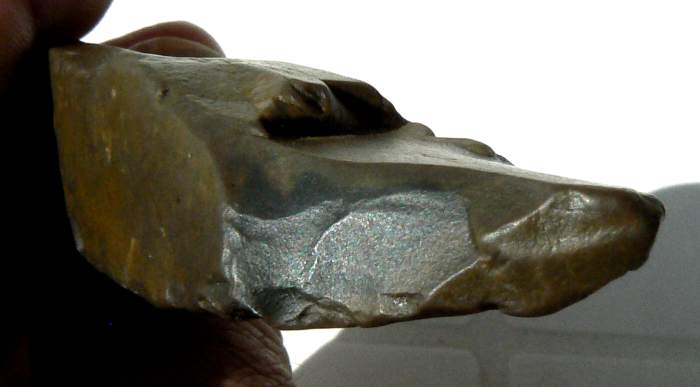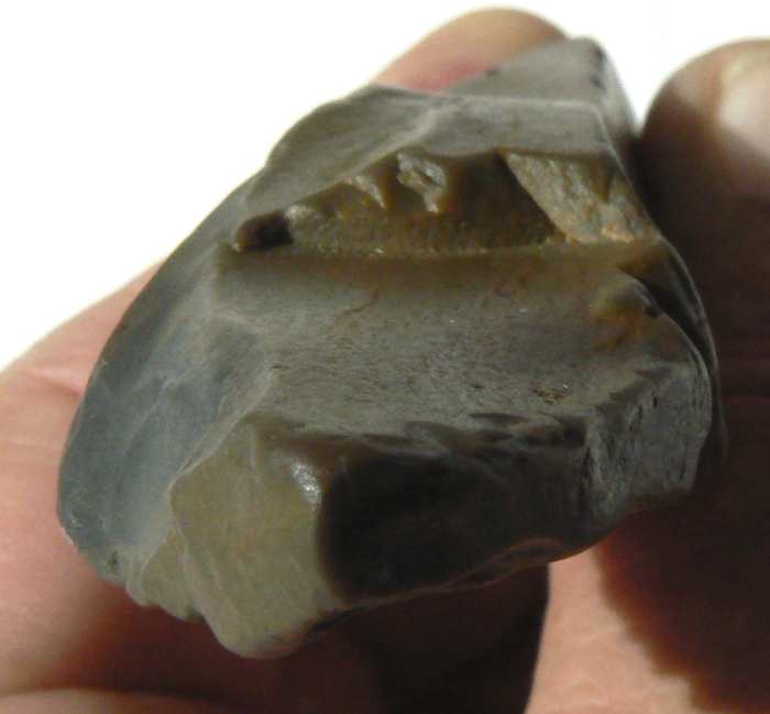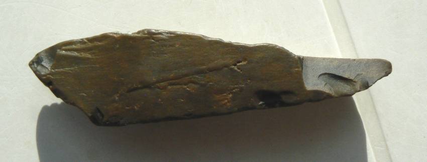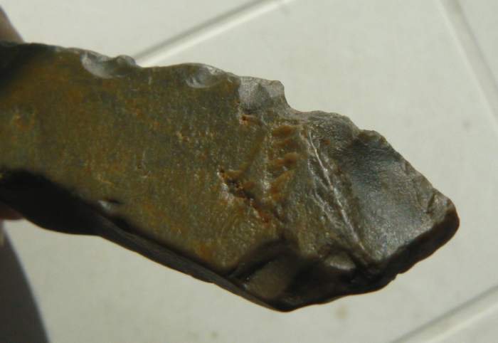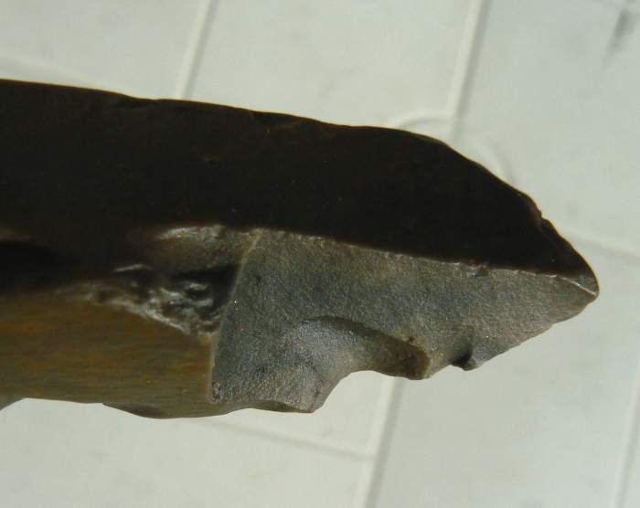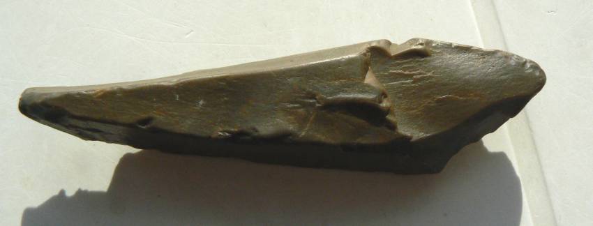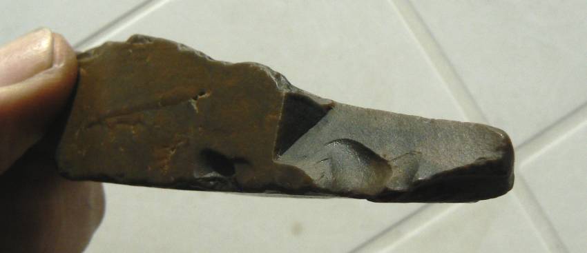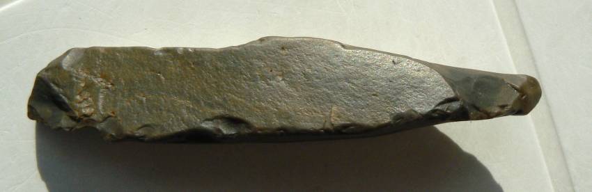 Un petit dernier avant de prendre la route du Soude. Je pense à un burin, vu le coup fait sur cette lame un peu roulée et émoussée avec cette sorte de pointe.