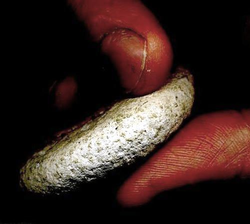 Tu es sur Valère que c'est de la pierre ?, cela me fait penser à un gros plomb de pêche dont l'attache en fer aurait disparue avec la rouille.