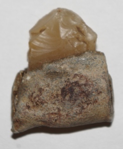 D'accord avec les copains, pierre à fusil atypique qui se trouve identifiée avec certitude grâce au morceau de plomb. Celui ci permettait de serrer le silex sans le casser. Au début on mettait de la feutrine ou autre, mais cela finissait toujours par prendre feu.