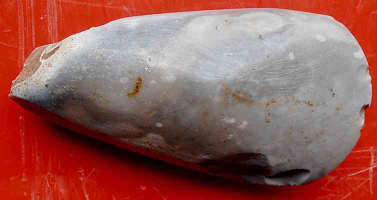 Tu parles, c'est un hache en silex polie du néolithiqe, qui est donc âgée grosso modo de 5 à 6 mille ans (compté à partir de maintenant bien sûr !)