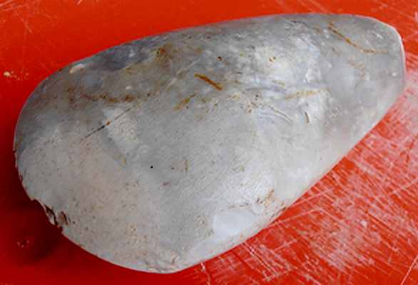 Mais ce matin j'ai rencontré Lilian, un petit bonhomme qui a eu la chance que sa grand mère lui offre cette jolie pierre d'environ 13 cm de long...
