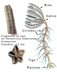 Les étoiles sont des restes d'animaux que l’on nomme crinoïdes, ou encrines, qui vivaient dans les mers chaudes, à la période du Jurassique, il y a près de 170 millions d'années. Elles vivaient en colonies, dans les fonds marins.