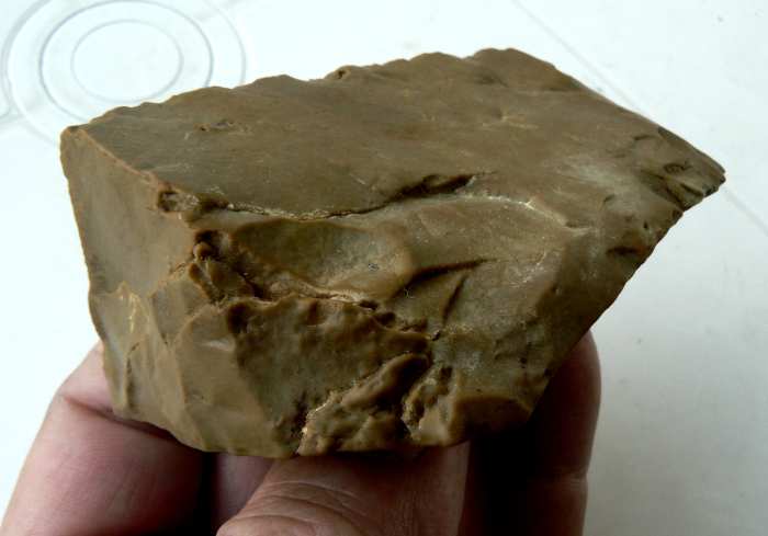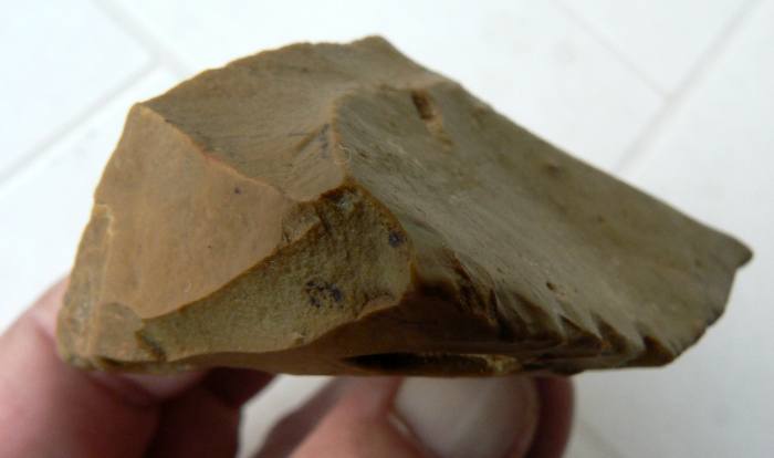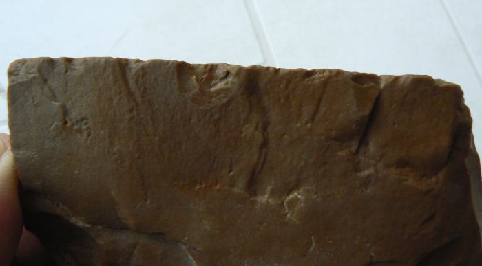 Je trouve que ce quartzite a l'air de racler des deux côtés, bien que l'un des côtés a un front dont l'angle d'attaque ressemble plus à celui du tranchet voir d'un grattoir. A suivre les trois principales faces de cet sorte de prisme Merci pour vos avis.