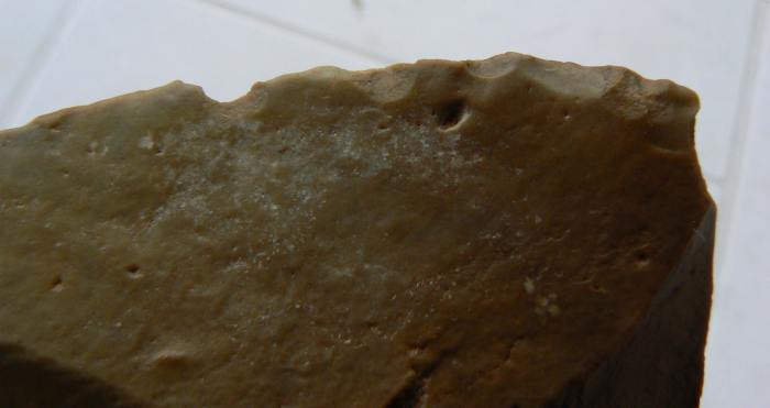 Ne crois pas, biface, que je cherche à te contre-dire, je te l'accorde il n'a pas du racler des deux cotés. Mais il devait racler sur le tranchant de R6 dont on voit les retouches recto-verso en R7 et R8, on voit aussi deux enlèvements en lamelles en 9, je joins une photo du tranchant ou l'on voit mieux l' arrondi de celui-ci et nous le fait voir avec un angle d'attaque plus raisonnable. Merci de ton passage.