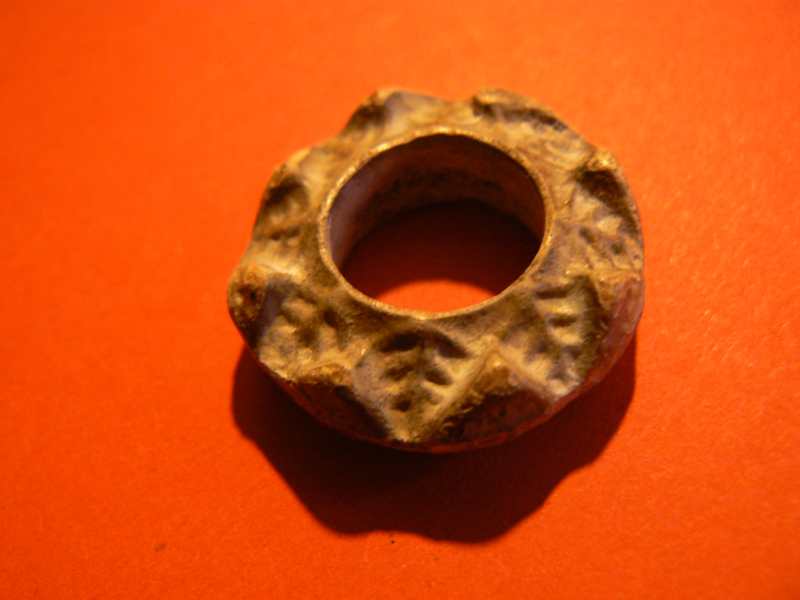 à tous .J'ai des dizaines de ces fusaiolles(rien à voir avec les rouelles) dans une boite car elles sont légion par chez nous et il est rare que je ne rentre pas sans une de ces fusaiolles dans ma poche(des grdes,des petites,en métaux différents);par contre aucune n'est aussi joliment décorer que la tienne!Très belle et en bon état!