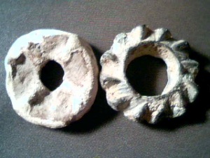 [192] Bah la confusion n'est pas près de disparaitre entre fusaïolles et rouelles, et pas que chez les adeptes du forum DP; un exemple encore : dans le métro de Rennes (à la station Ste Anne) une expo permanente de trouvailles de fouilles du centre ville montre une fusaïolle en plomb intitulée 'rouelle'...