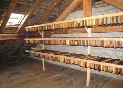 En photo, un truc : l'hiver je range les cadres des hausses sur un râtelier au grenier en plein air, la teigne ne s'installe pas dans la cire ainsi...