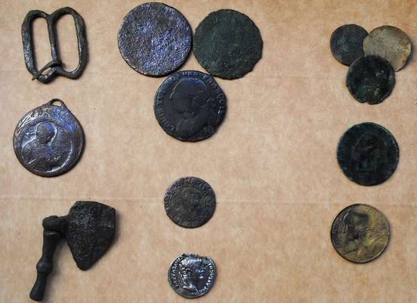 n'ayant qu'un bras valide je ne pouvais pas creuser à tout bout de champs (ou plûtot de bois).J'ai donc insisté sur les cibles en analysant bien les sons même les plus infimes.Par exemple en temps normal j'aurai sûrement rejeter le son de la vervelle pensant à une énième cartouche dont mes poches était déjà bien garnies.Mais, en écoutant bien, le son était plus sec tout en ayant la tonalité d'une douille de chasse.J'ai creuser pour mon plus grand bonheur.Il en est de même pour les trois monnaies révolutionnaires qui avait un son presqu'innaudible mais franc.