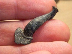 comme la queue de paon, je vous montre un fibule 'genou' principalement originaire des pays de l'est, 1ere du type trouvée en 16 ans de detection
