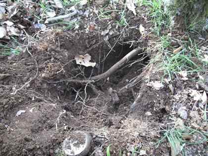 Bonjour. Devinette : que voyez-vous dans le trou ? La réponse sera donnée dans la journée avec une photo plus proche et ensuite une fois l'objet nettoyé!