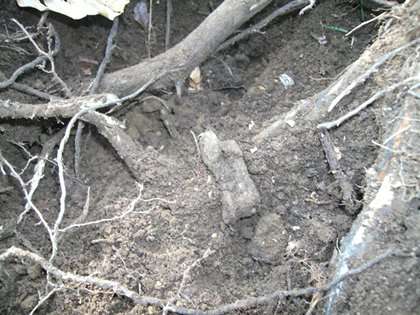 en effet il y a bien des racines et de la terre! Par contre ce n'est pas une fibule ( malheureusement ), comme indice : origine 100% bretonne!