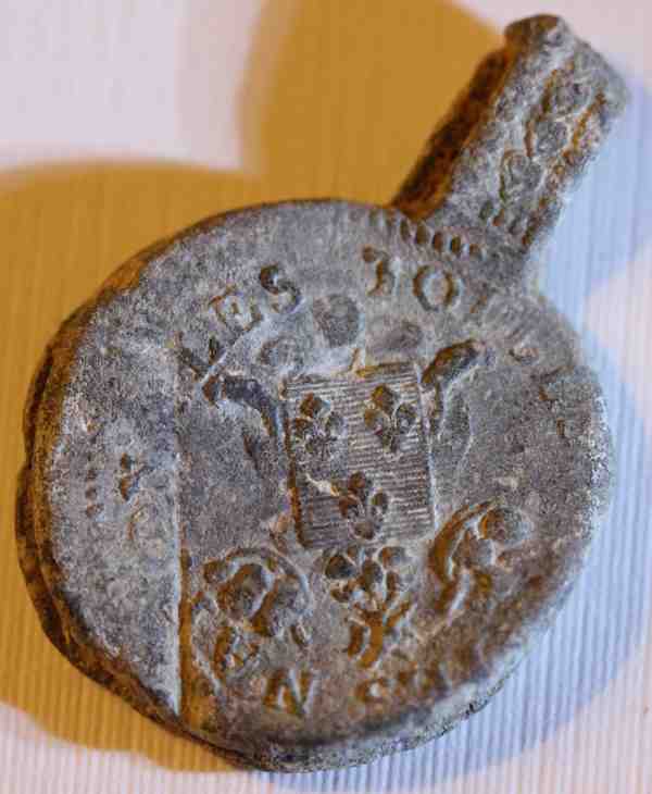 Je reste très attaché à ce plomb ( daté 1606 !?) à l'écu de France et Navarre déjà posté (N°58720) ; sur lequel je n'ai jamais trouvé d'infos...
