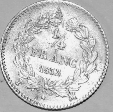 1/4 de franc de louis Philippe 1er 1832 atelier de Marseille seul 3 exemplaire répertorier.