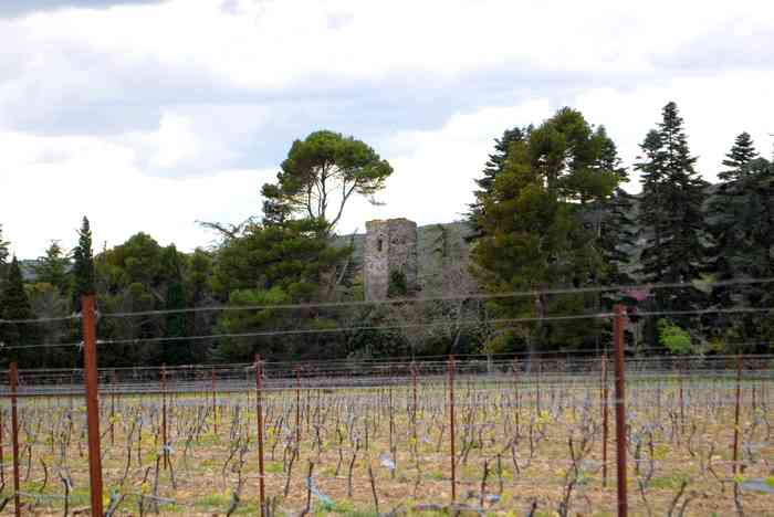 Pas plus tard que cet après midi, je me baladais à travers vents & collines Audoises, quand soudain je vis une tour s'élevée derrière une vigne. Je connaissais pourtant bien le coin , car la route passe au bord du domaine. Mais je ne connaissais pas le ''derrière'' du domaine.