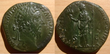 apres une periode calme,voici cette piece sortie ce soir dans un bois voisin ,petit diametre pour un sesterce 25mm pour un poid de 19g