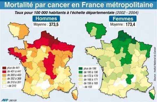 Sujet délicat, mais j'avais vu cette carte il n'y a pas longtemps, elle date un peu. mais d'après cette carte (AFP) de 2004, il y en aurait eu beaucoup en Bretagne chez les hommes.