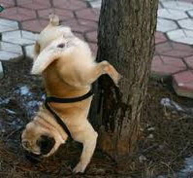 Si un chien fait cela sur un arbre, j'aimerais savoir se qu'il a bu??? et le maître aussi du coup.
