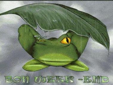 On ne regarde même plus la météo et le temps, on s'en f..., de toute façon il faut sortir, alors .... Le pire c'est pour les travailleurs qui sont toujours dehors, comme mon facteur .... misère, parfois il ressemble à ta grenouille ici plus haut avec un capuchon au lieu d'une feuille, bien sûr