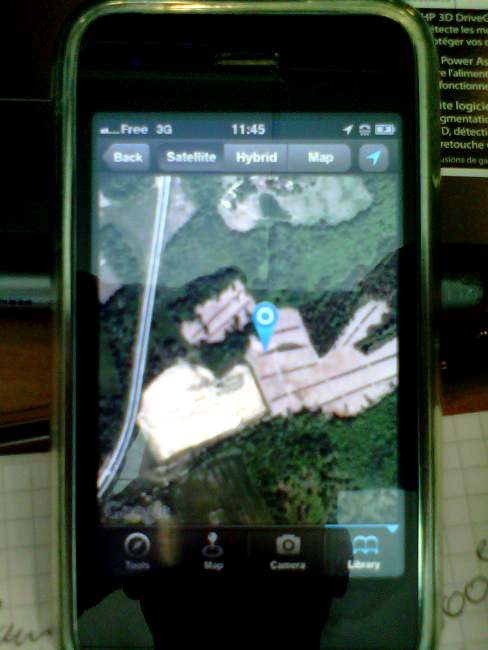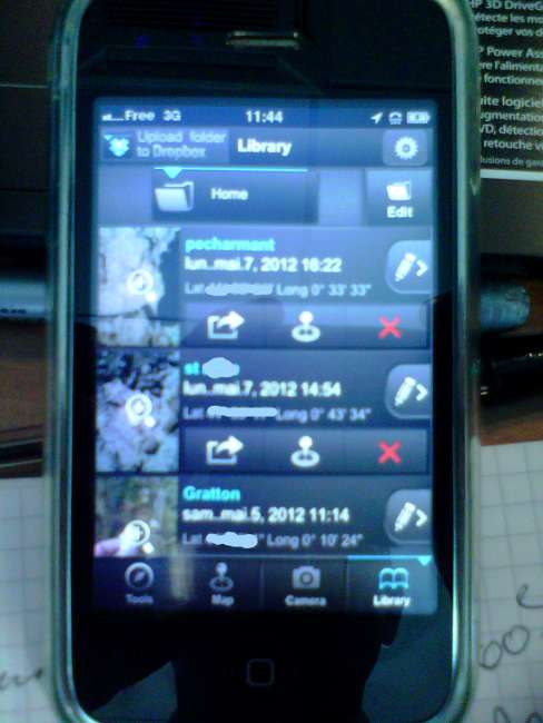 Pour ceux qui ont un ifon, (j'ai un 3gs d'occase qui ne m'a pas couté bien cher ... + free ...) voilou ce que ça donne les photos sont classées par dossier, on peut rajouter des infos perso, un point gps très précis est enregistré avec possibilité de le voir sous forme de photo satelite, carte ou un mix des 2. J'ai rien trouvé de + pratique ... @+