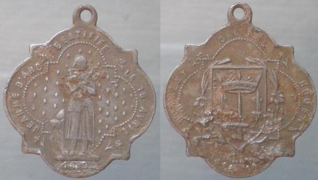 Une médaille de Jeanne d'Arc en alu, 20eme siècle, dimensions avec la bélière 27m/m X 24m/m