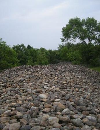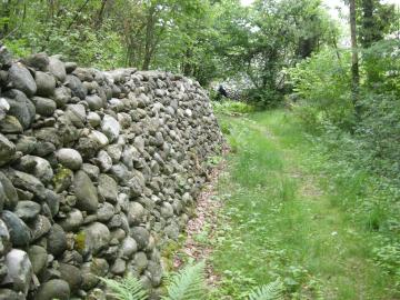 L'ancienne moraine glaciaire mesurant prés de 5km / 1 a été lavée pour récupérer l'or et les pierres récupérées au fur et à mesure de l'exploitation pour realiser des chemins des murs et toutes sortes d'accumulations de formes plus ou moins géométrique