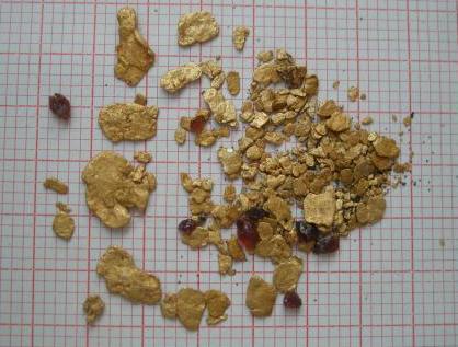 Resultats des récoltes dans l'Elvo : paillettes et grenats