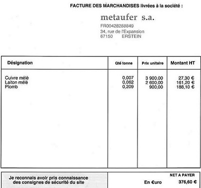 ça y est , je me suis enfin décidé à rapporter mes métaux au récupérateur , voiçi le résultat :