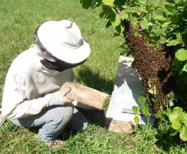 Si il y a un apiculteur à coté de chez toi, tu vas le prévenir et si tu connais personne, cherche le site internet SOS essaim, tu as la liste par département des apiculteurs qui récupèrent les essaims.