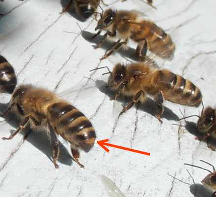 Elles 'appellent' en se mettant dans la position comme sur la photo en battant des ailes et en émettant une phéromone avec la glande de Nasanov (flèche rouge)