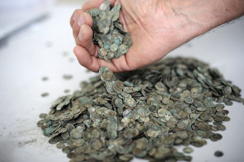 'C'est une découverte très rare qu'a faite un ouvrier en réalisant des travaux sur un terrain privé. À l'occasion du terrassement d'une villa, entre 800 et 1000 pièces de bronze ont été déterrées le 12 juin dernier à Meximieux, près de Lyon. Ces pièces datant du IIIe siècle après Jésus-Christ, vers la fin de l'Empire romain, ont été confiées aux services d'archéologie de l'Ain.....'
