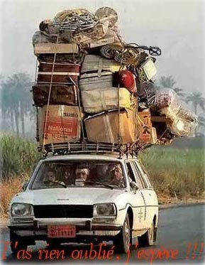certain d'entre vous (pas moi ) sont sur le pied de guerre a s'acharner a tout faire rentrer dans une valise toujours trop petite, alors a tout ceux qui prennent la route ce weekend je vous souhaite de passer de