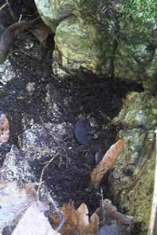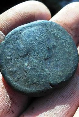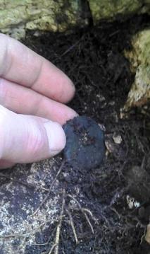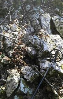Il s'agit donc de la découverte d'une monnaie coincée entre deux rochers dans un lit de ruisseau asséché au pied d'une falaise, genre de résurgence qui ne résurge pas tant que ça . Le fond du ruisseau est de la roche posée en écaille, ou en épi orienté vers l'amont. Je me suis donc demandé si des fois qq objets ne c'étaient pas figés dans les trous, et voila.