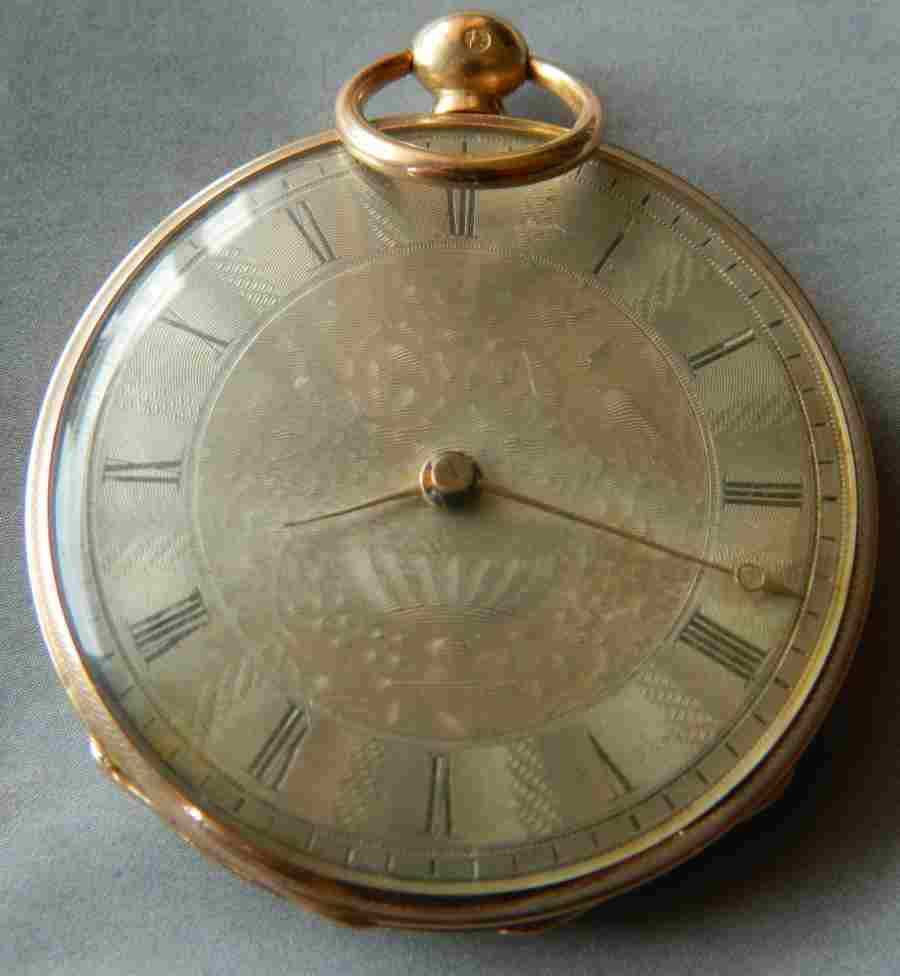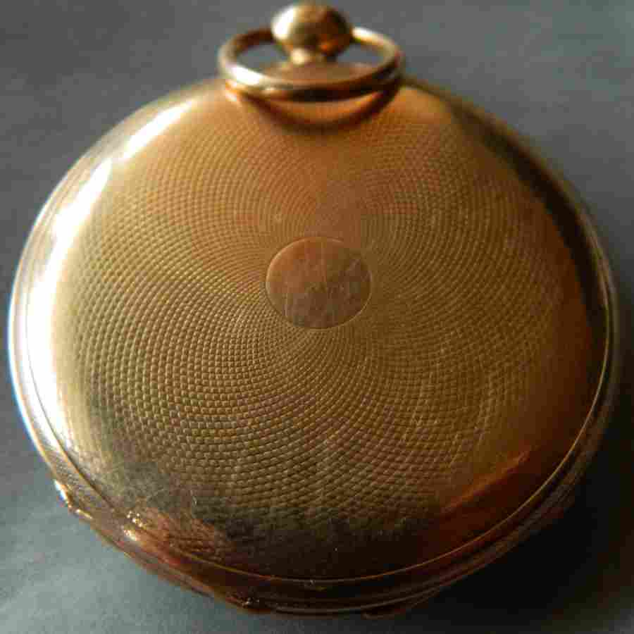 Il y a dessus un poincon dit tete de boeuf. Ce qui correspond à une montre faite par des horlogers francais entre 1822 et 1836 me semble t il. Pour ce qui est du decors, il sagit d'un guillochi. C'est egalement un guillochi sur le cadran qui est en argent.