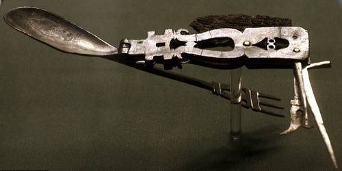 En naviguant au hasard sur le net je suis tombée sur cet objet, exposé au Fitzwilliam Museum de Cambridge. Décidément, notre monde 'moderne' n'a rien inventé : après la pile mésopotamienne et la machine d'Anticythère, le couteau suisse romain (3e siècle apr. J.-C.).