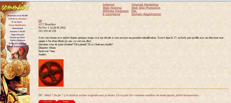J’ai retrouvé ma première demande d’identification, datée novembre 2002 . Simplement pour vous montrer le visage du forum à l’époque. Le post porte le N° 3227, il serait intéressant de voir le N°1 .