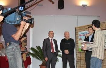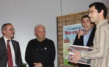Après l'arrivée de Monsieur le Maire (Jacky Goulay, à gauche sur la Photo) et la remise du prix de citoyen d'honneur de la ville à JL Pesch (Sylvain et sylvette, le bec en fer,...au centre), le prix du roman policier de Turquant a donc été remis à Valère en présence de son éditeur (à sa droite).