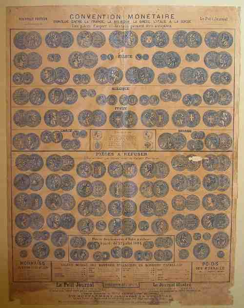 En rentrant chez moi, j'ai fait quelques recherches pour en savoir plus, et en fait, il s'agit d'une affiche qui date de 1903 qui était dans le Petit Journal illustrant les monnaies concernées par la Convention Monétaire conclue entre la France, la Belgique, la Grèce, l' Italie et la Suisse.
