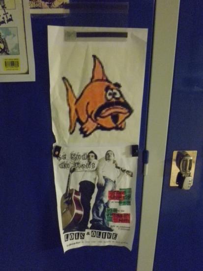 donc, il y a des photos mes petits enfants, des affichesde mon fils Loïs le musicien, et mon avatar qui a bien plu à un ami et collègue de bureau et qui n'a pas résisté à le coller