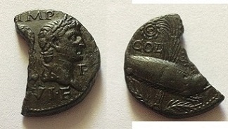 Pour moi c'est bien une cassure volontaire: le trait de cassure côté face est toujours entre Auguste et Agrippa pour ne pas déteriorer leurs portraits