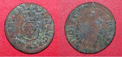 J'ai eu la chance de trouver ce liard en cuivre (22 mm) Louis XV de 1770 AA (Metz) dans un champ bourré de ferrailles !!!!
