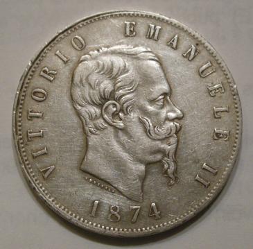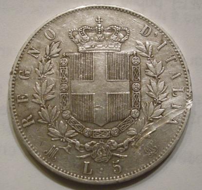 Juste pour les yeux voici toute juste sortie de terre il y a 1h une jolie galette de 5 Lires de Vittorio Emanuelle II : dernier Duc de Savoie et premier Roi de l'Italie unifiée