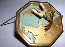 Cette fois-çi ce n'est pas un objet trouvé en détection que je propose à votre sagacité mais une jolie broche ressortie du fond d'un tiroir. Elle doit être des années 50 et représente une colombe survolant la France et l'Angleterre avec, dans son bec, un brin marqué 'liberté' . Cette broche doit avoir un sens mais lequel?